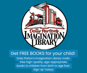 Get FREE BOOKS for your child! Dolly Parton’s Imagination Library mails free high-quality, age-appropriate books to children from birth to age five! Sign Up Today!